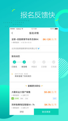 报名反馈快;