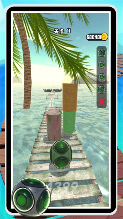 玩家将操控圆球在水上栈道展开冒险之旅;成功抵达终点可获得丰厚奖励;游戏过程中需要时刻注意躲避道路障碍与危险区域。