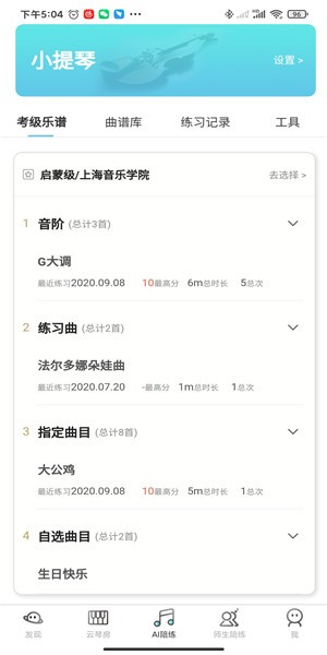 提供分段练习、视唱训练、日常练习和水平评测等多种专业模式;
