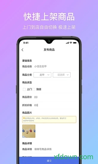 灵活设置上门或到店服务模式,实现商品秒速上架。
