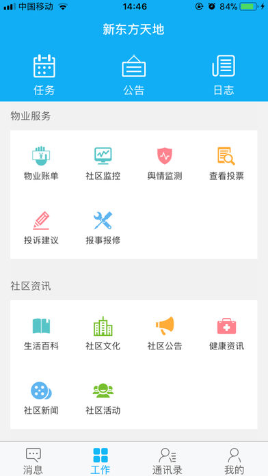 新天地物业APP为社区物业提供一个、高效、透明的对外服务平台,支撑物业管理人员为住户提供高品质的服务,搭建物业与住户之间的沟通桥梁。