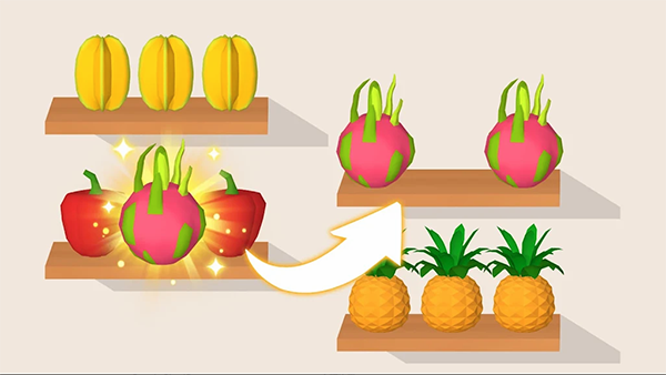 游戏中包含丰富多样的商品类型,从热带水果到珍稀动物应有尽有。玩家需要运用生活常识,将相同种类的物品归类摆放。