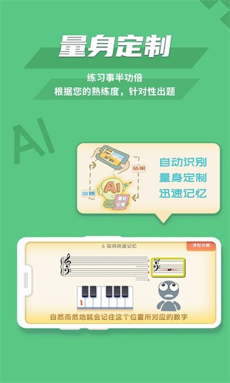 及时的去进行五线谱的速记,而且可以在十分钟之内去轻松的完成各种基本的五线谱,高效的识别。