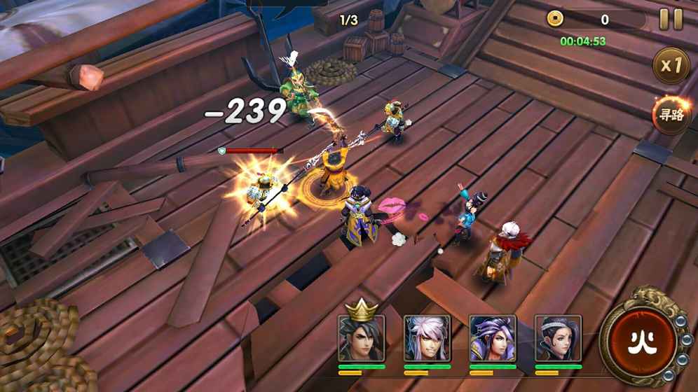配置合适的武将上阵,最佳的配置是1个型武将,2个伤害型武将和一个治疗武将