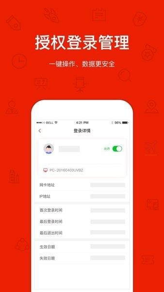 登录管理,用户可以通过APP,设置是否允许罗马管家PC端程序在某台电脑登录。