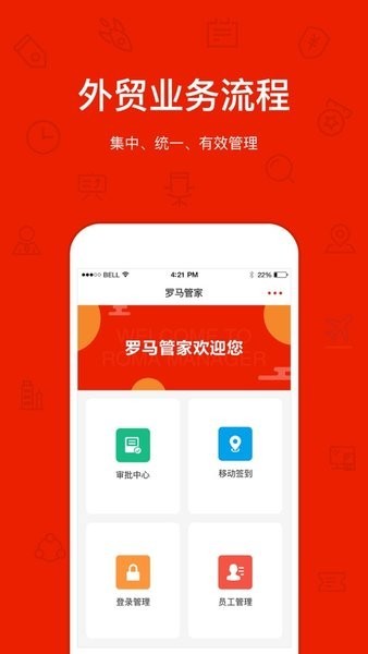 全面专业的外贸企业信息管理软件,为企业提供了包括客户管理、产品管理、业务管理、单证管理、库存管理为一体的专业外贸信息化管理服务,是新一代一站式外贸信息化管理专家。通过罗马管家APP可以管理员工信息、登记信息、请假申请、出差申请以及单据的审批。