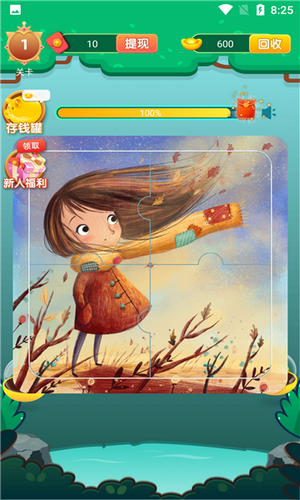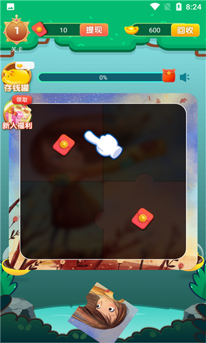 完成拼图关卡挑战即可领红包,关卡数量非常多。
