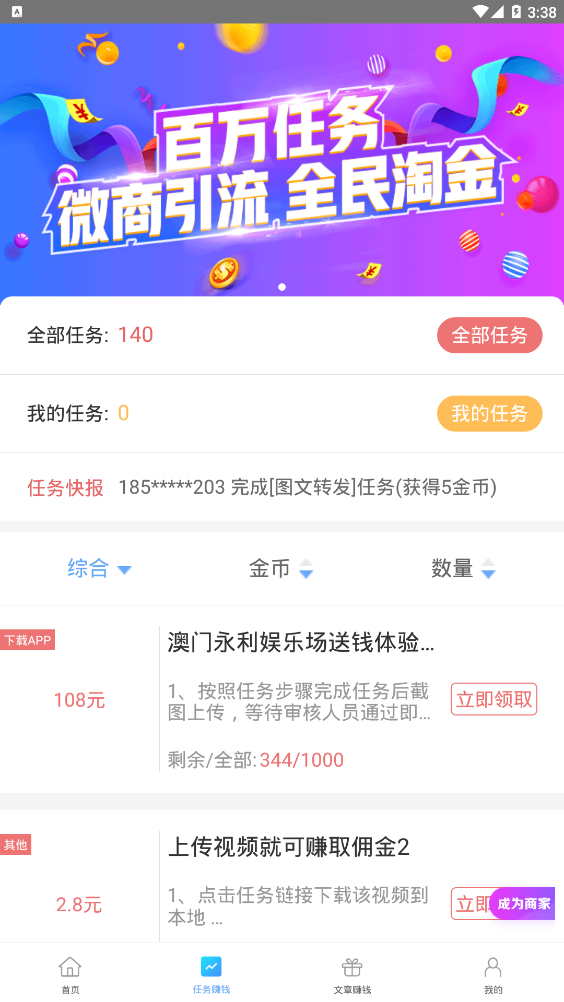 淘金APP,让赚钱变得简单又有趣!无论你是学生、宝妈还是上班族,只需利用碎片时间轻松点击,就能积累财富,无需耗费精力,随时随地开启赚钱之旅。