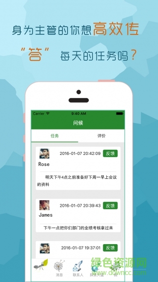 问候app是一款专为企业高效协作设计的办公工具,它简化了内部沟通流程,让员工与管理层之间的信息传递更加顺畅,从而提升整体工作效率。无论是任务分配还是即时交流,都能通过这款应用轻松完成,现已在绿色资源网开放下载。