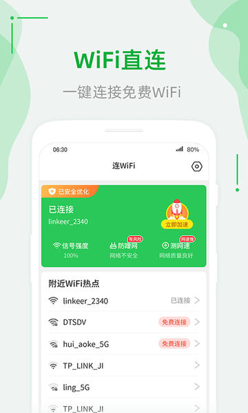 【极速连接】智能优选高速WiFi信号,游戏对战、视频观看流畅不卡顿,带来丝滑般的网络体验。