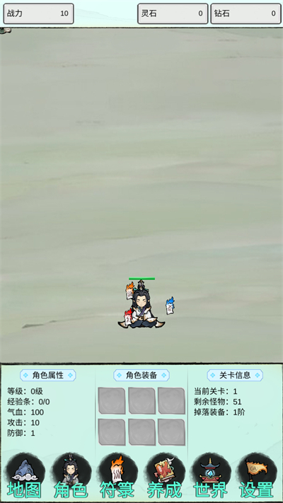游戏会自动攻击遇到的怪物,通过下方功能选项可以强化战斗能力;