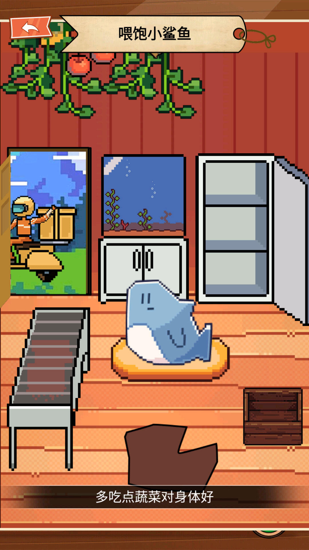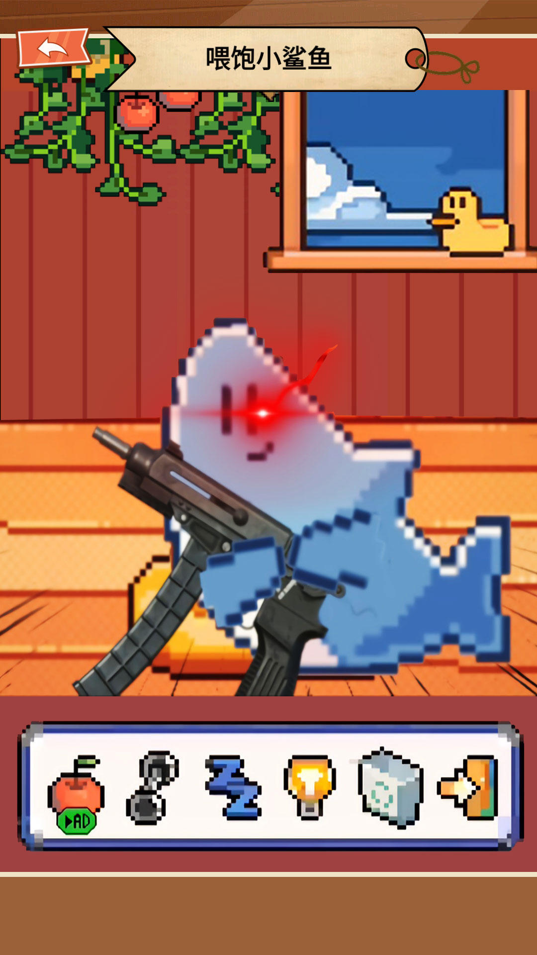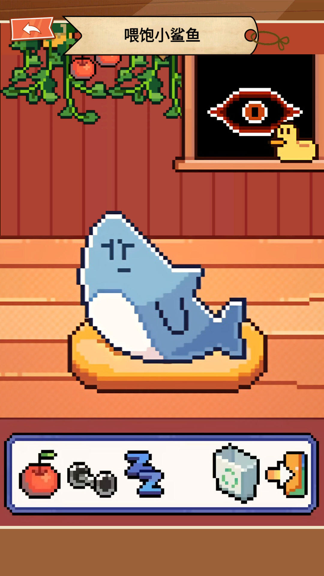 通过喂食、洗澡、玩耍等方式照顾像素鲨鱼,让它健康;