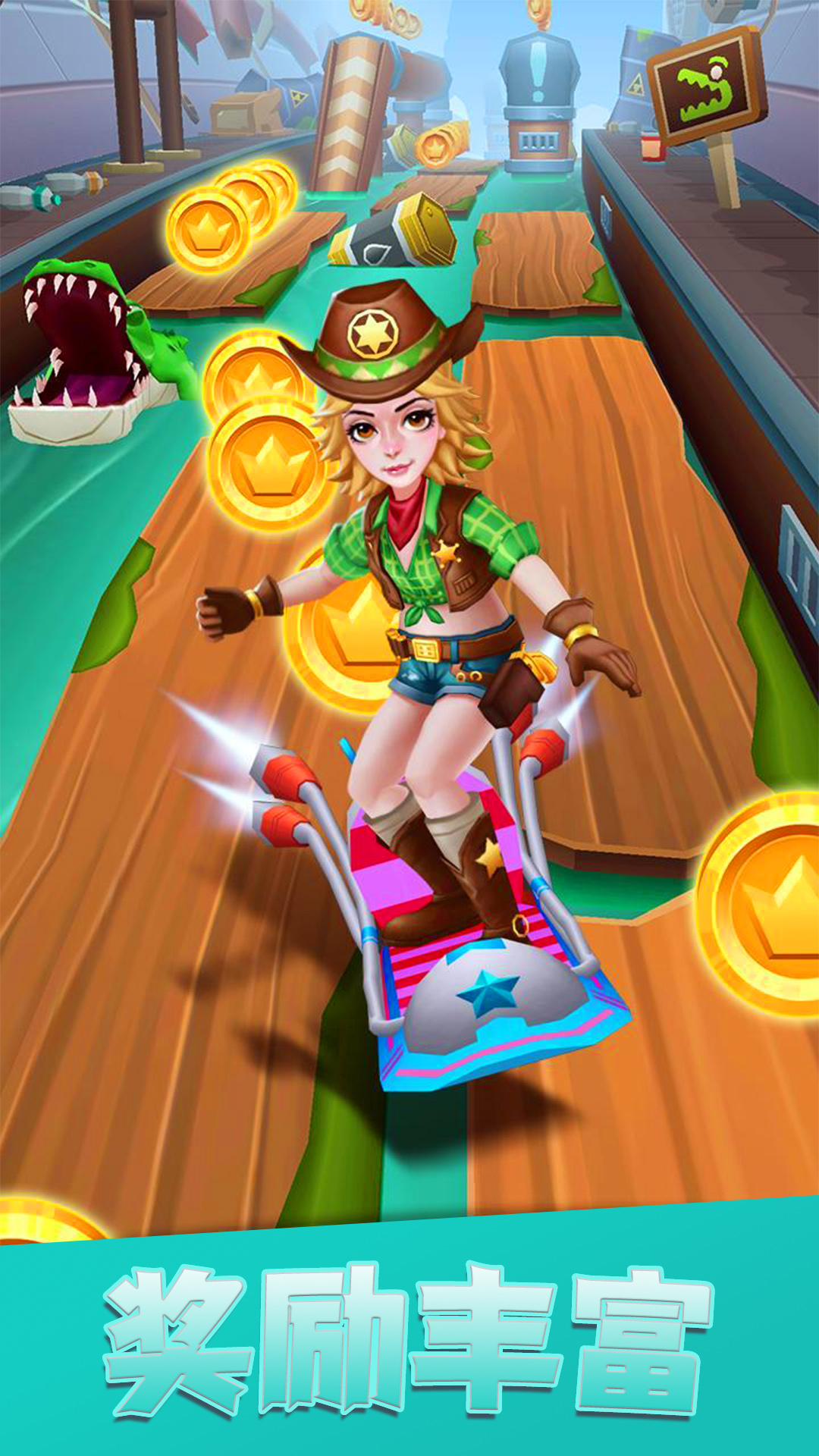在不同赛道上跑酷,通过自己的指尖跳跃滑动躲避障碍,让你的角色保持快速前进;