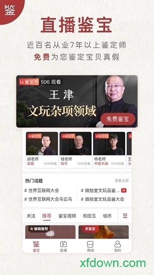 在文玩鉴宝层面,平台入驻近百名从业7年以上鉴定大师,为广大用户提供免费的1对1在线直播鉴定服务;