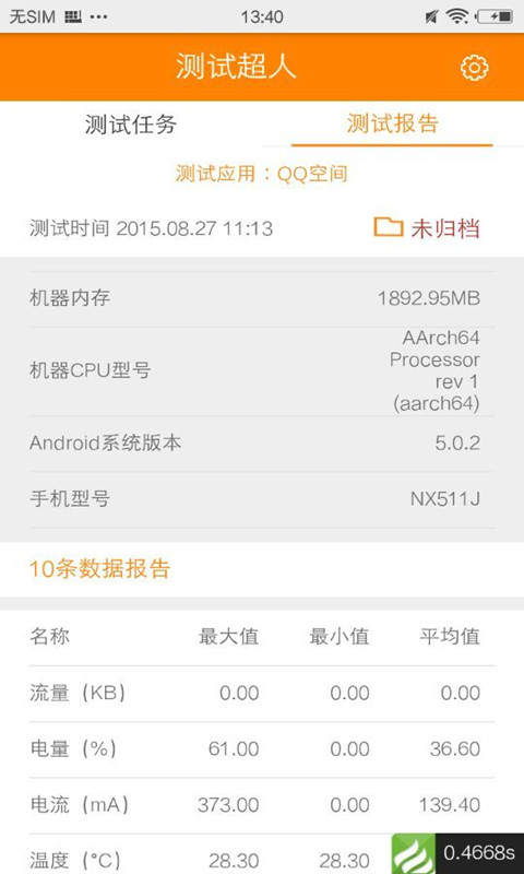 全面检测应用耗电量、启动耗时、电流消耗等性能指标