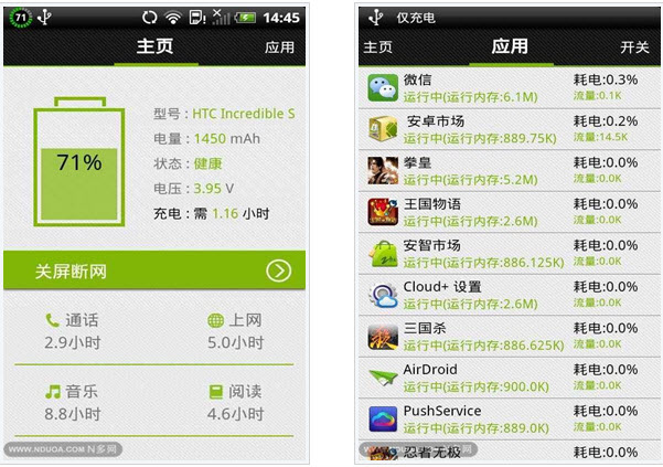 ★应用耗电分析:详细统计各应用程序的耗电量、CPU占用率及网络流量使用情况;