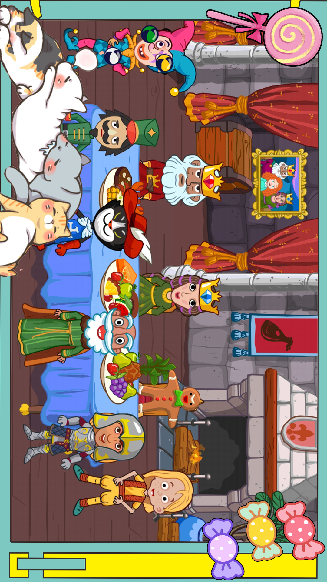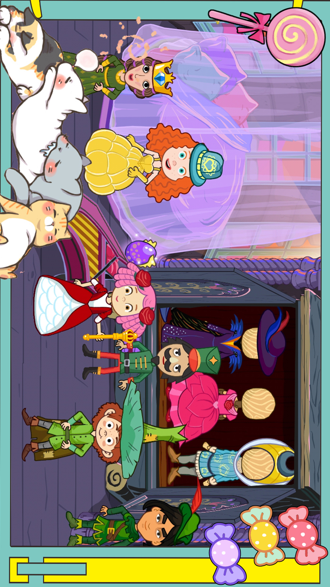 国王城堡:会见小公主的家人和朋友。从国王爸爸到皇后妈妈,到卫兵、厨子,甚至女巫。巨大的城堡,有许多房间可探索,有许多秘密待发现。