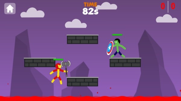 火柴人对决之巅是一款以火柴人为主题的对战游戏,感受这里全面的对战游戏,体验刺激的战斗,选择你的人物形象开始欢乐的对战!