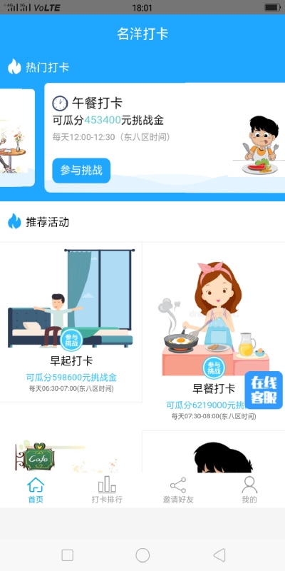 名洋打卡是一个集目标管理与社交监督于一体的平台。平台涵盖多种生活场景的打卡项目,包括晨起打卡、运动计步、饮水提醒等日常习惯养成功能。用户通过每日签到完成挑战,不仅能培养自律的生活方式,还能获得相应的奖励激励。