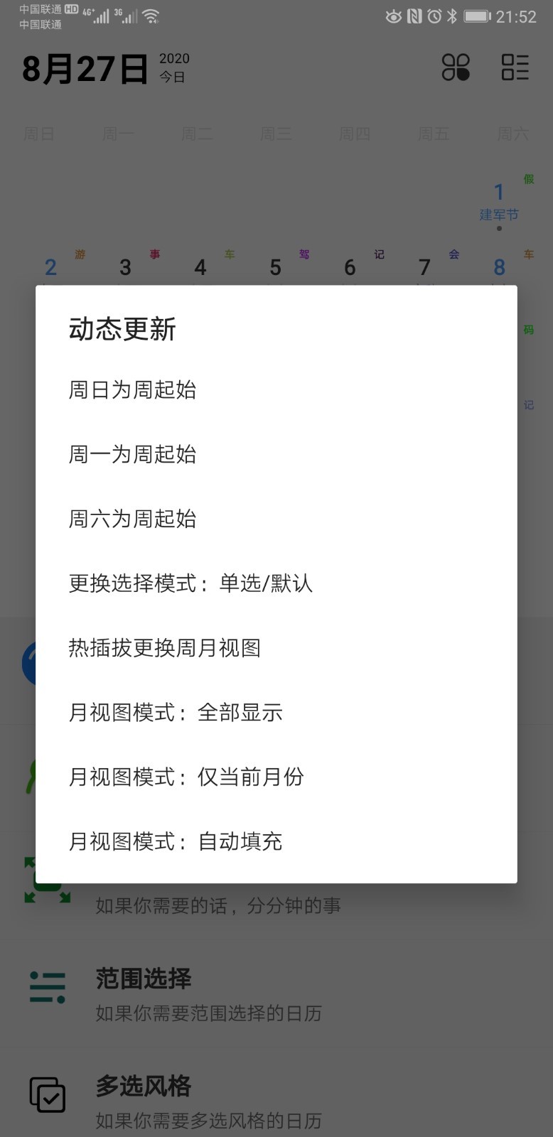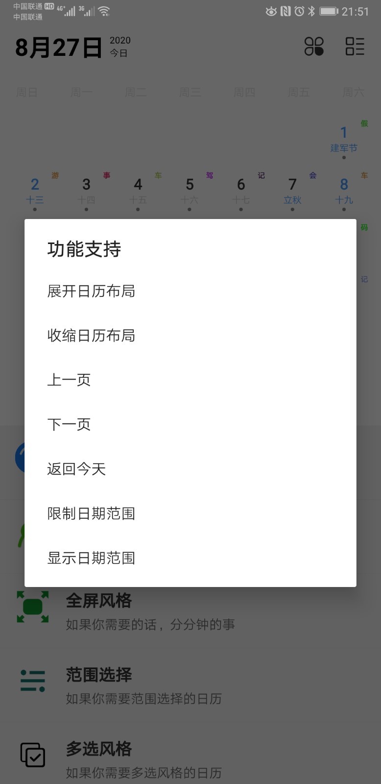 私人定制:支持全屏半屏日历样式、多种主题皮肤。