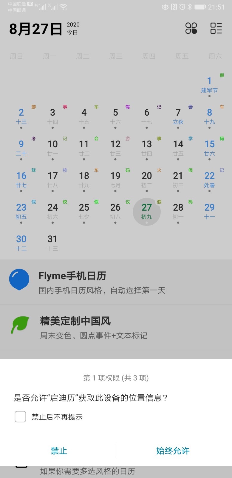 各种不同风格日历,定制国画风,多选风格,flyme风格,