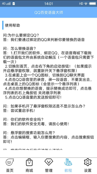 有软妹纸语音,也有汉子语音,能在群里调戏群友,还可以把您变成的任何声音发到微信、陌陌,丰富的语音,保证别人听不出来你原本的音色。