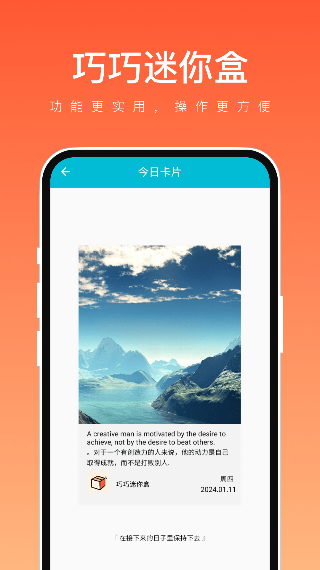 巧巧迷你盒是一款专为提升自律能力而设计的手机打卡应用。这款软件通过科学的打卡机制,帮助用户逐步培养健康的生活习惯和工作规律。从日常饮水到规律作息,从学习计划到健身目标,用户都能通过巧巧迷你盒进行有效追踪和管理。