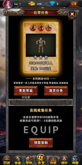 通过击败怪物、完成任务或参与活动,你将获得种类繁多的装备,逐步打造属于自己的强力角色。