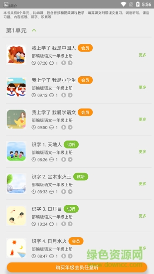 它教学进度,紧贴教材,突出重点,提炼精华,使小学生在课前能高效预习,全面提升课堂学习效果;在课后能轻松复习和拓展,巩固每课所学知识点。以"听"为主、视听结合,培养孩子的专注力和想象力,保护孩子视力。