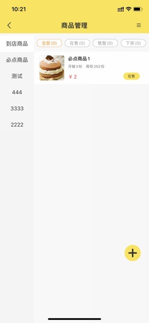 商品管理页面中点击右下方的+可进入新增商品页面。