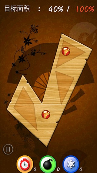 关卡目标面积40%,木板切到目标面积即可闯关成功。