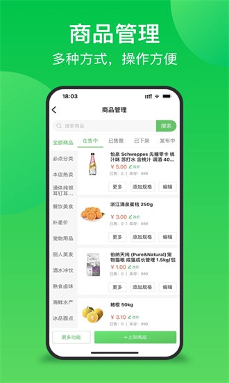 还可以进行商品管理,修改商品信息,进行上下架操作