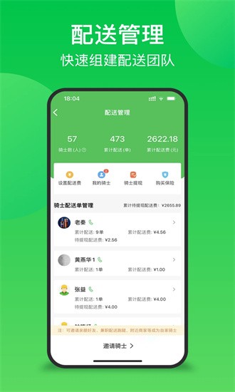 管理、订单管理、配送管理、会员管理、经营
