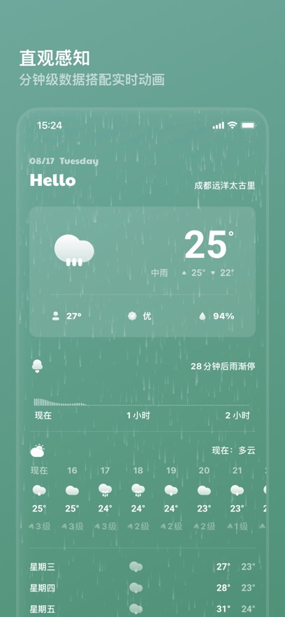 分钟级实时天气更新:我们采用先进的气象监测技术,为您提供当前所在地最准确的天气数据,确保您每次出行都能做好充分准备。