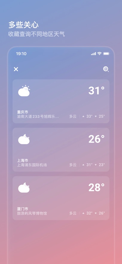 智能定位服务:自动识别您的位置信息,同时支持添加多个关注城市,随时查看各地天气状况,满足差旅人士需求。
