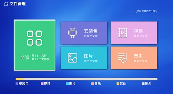 全面管理电视存储中的各类文件,包括安装包、音视频等多媒体内容。