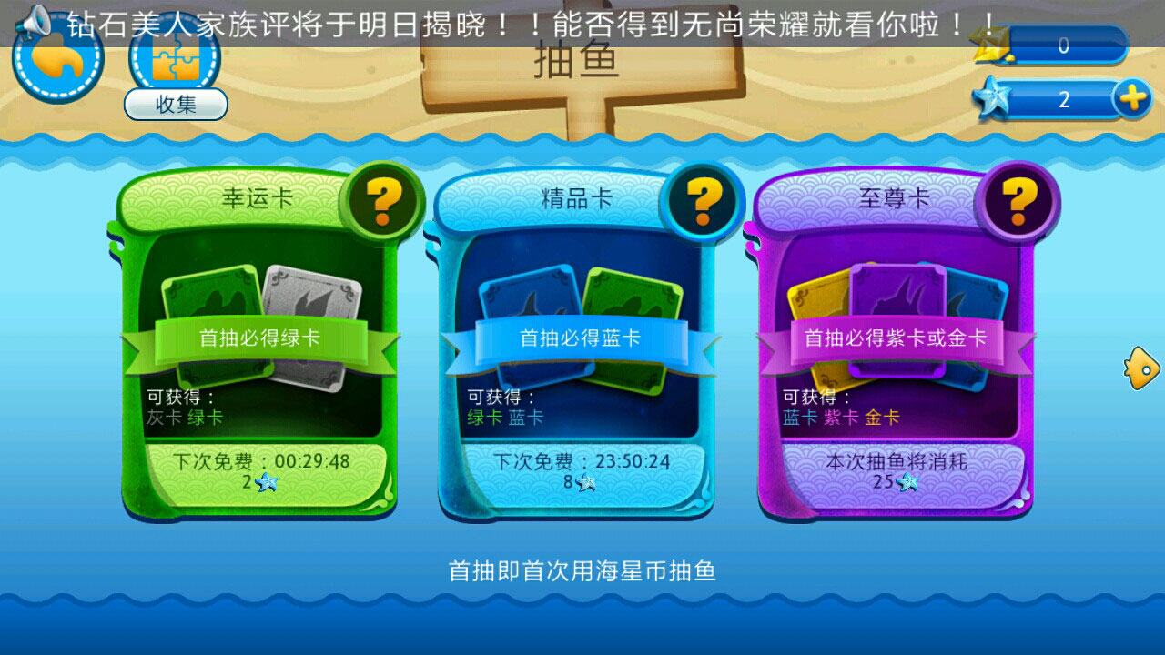 完善的抽奖系统使您不用多花钱也有机会获得游戏的顶级鱼品!