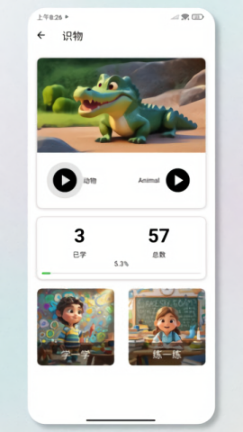 这是一款专为儿童设计的认知启蒙软件,通过丰富多样的内容和生动有趣的形式,帮助孩子们在快乐中学习成长。软件包含海量知识资源,搭配精美的图片和互动元素,能够有效提升孩子的认知能力和综合素质。简洁美观的界面设计结合多样化的学习模式,让孩子轻松培养自主学习意识,在图像、音效和动画的沉浸式体验中快速吸收知识。