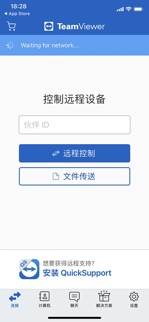 打开苹果手机teamviewer,在伙伴ID界面输入伙伴ID后,选择"远程控制"选项,