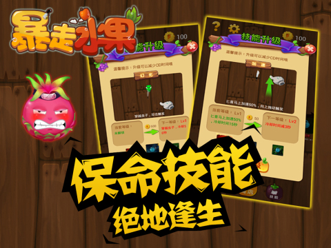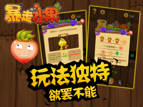 《暴走水果》是一款以水果因生虫而暴走嘲讽为主题的趣味休闲游戏,玩家需要投掷武器攻击四处移动的水果,直到将它们击爆。游戏包含雪梨、橙子、苹果、火龙果、桃子、西瓜、菠萝和番石榴八个关卡。特别有趣的是水果们都带着贱萌表情,如果玩家未能击中,它们还会发出嘲笑声!