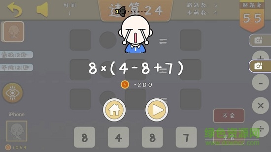 速算24手机版是一款寓教于乐的数学益智游戏,玩家通过灵活运用加减乘除运算,将随机给出的4个数字巧妙组合成24即可通关。这款游戏不仅能激发孩子的数学思维,还能有效提升心算能力,现已在绿色资源网开放下载。