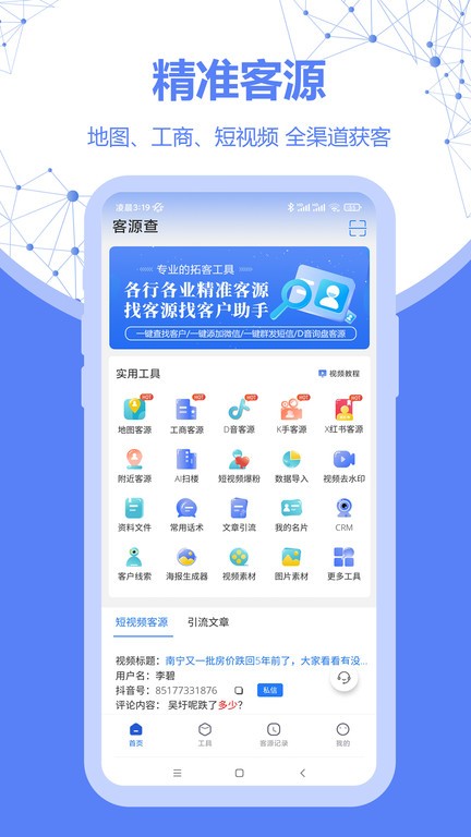 客源查手机官方版是一款专为手机营销打造的实用工具。通过该软件,企业能够创建专属关注群组,引导客户分享使用心得,同时发放个性化优惠券和折扣活动。这些功能不仅有助于传播品牌理念,还能有效提升企业口碑和影响力。