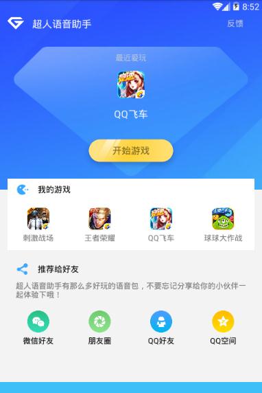 完美兼容绝地求生、王者荣耀、QQ飞车、球球大作战等热门游戏,内置海量语音包资源,无需消耗流量即可使用。特别推出孙悟空限定语音包,更有便捷的QQ语音录制功能,一键操作即可完成。