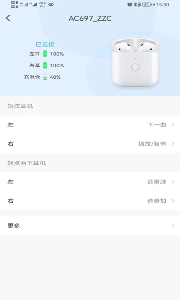 一开始只是想看看耳机电量,结果发现还能改名字和操作方式,超出预期!
