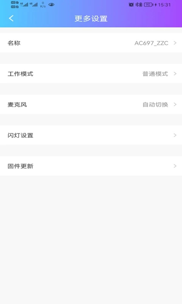 在"更多设置"页面中,还可以修改设备名称、切换工作模式、设置灯效与更新固件。