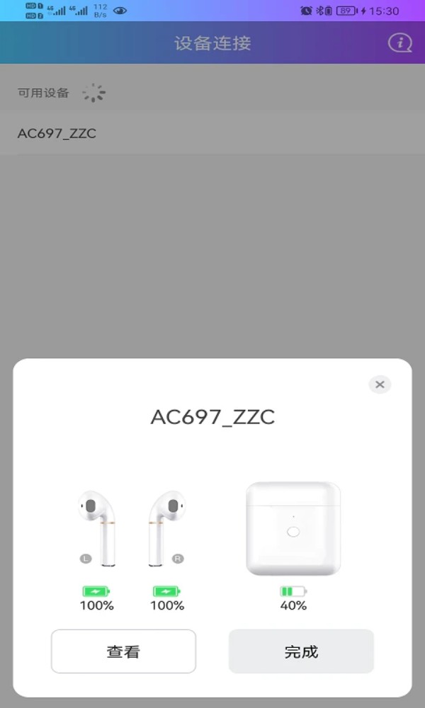 连上耳机后主界面立刻显示三格电量,左右耳和充电盒分得明明白白。