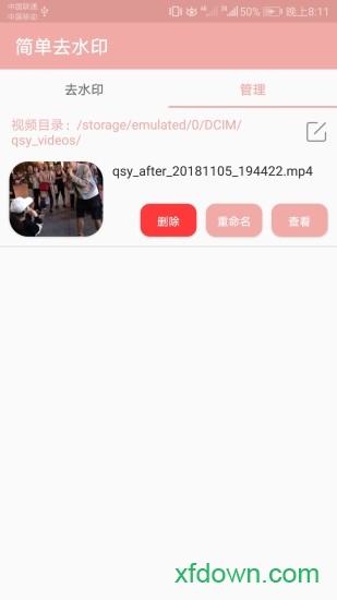 3.查看视频;在管理页面可对处理后的视频进行删除、重命名等操作