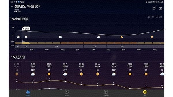 24小时:精简页面,当日天气趋势随心查阅。