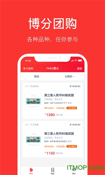 作为专业的纸钞收藏交易平台,新浪物以为用户提供全方位的收藏服务。平台特色功能包括博分团购、淘分购买和公开求购等多样化交易方式。所有上架纸钞均经过PMG专业认证,确保藏品品质。简洁直观的界面设计配合丰富的纸钞品种,让收藏变得更加轻松愉快。
