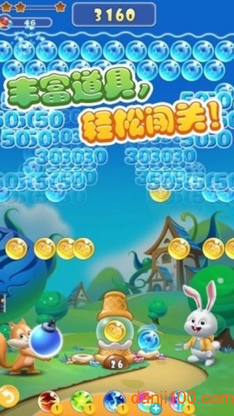 每次消除的泡泡越多对应的金币奖励越丰厚,还有机会获得随机红包奖励哟。